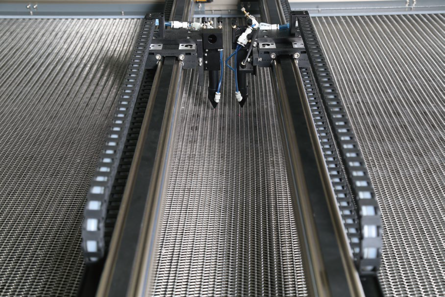 2、全自動送料系統配有履帶式工作平臺,穩定可靠,適合大批量下料生產。