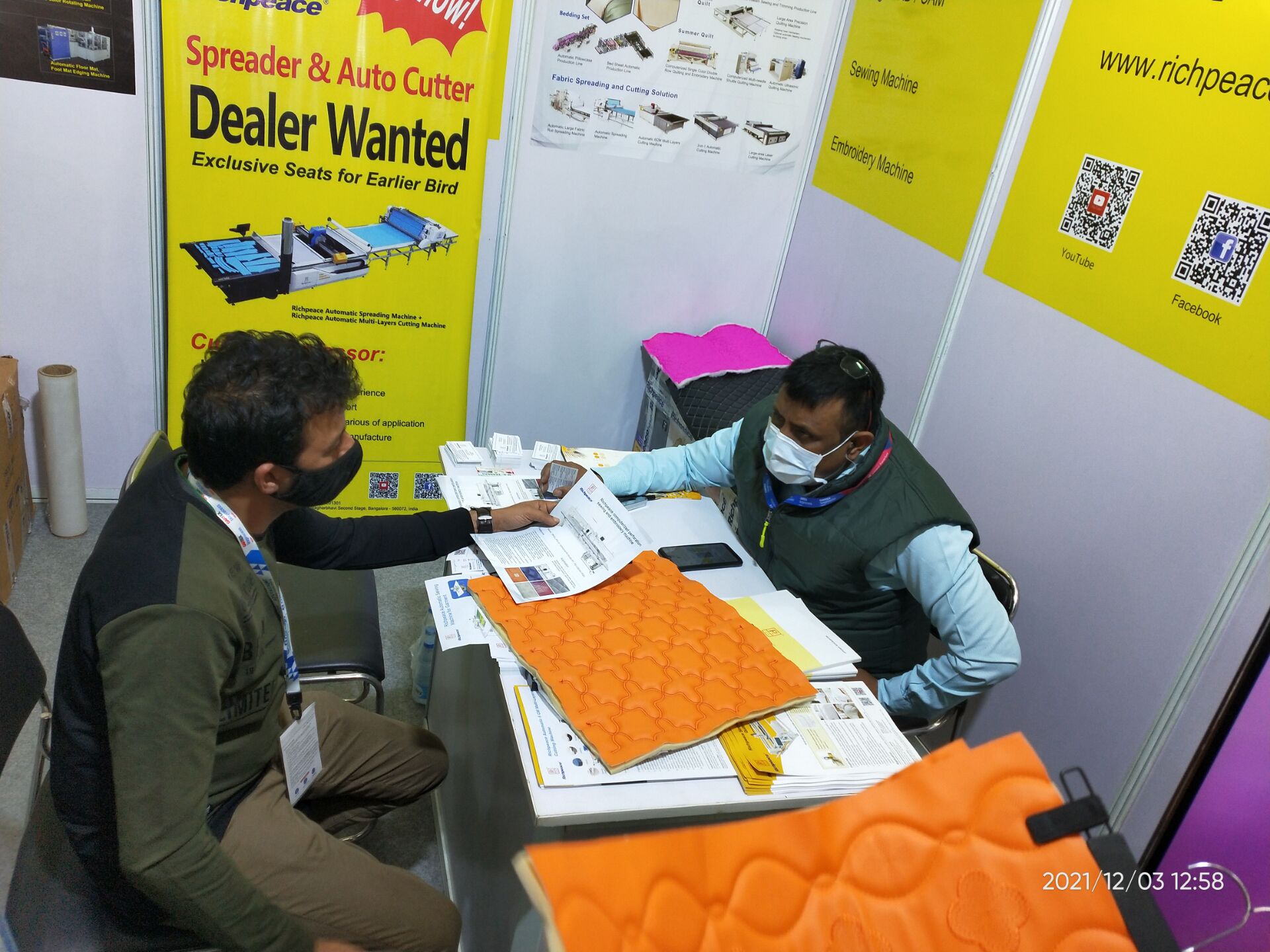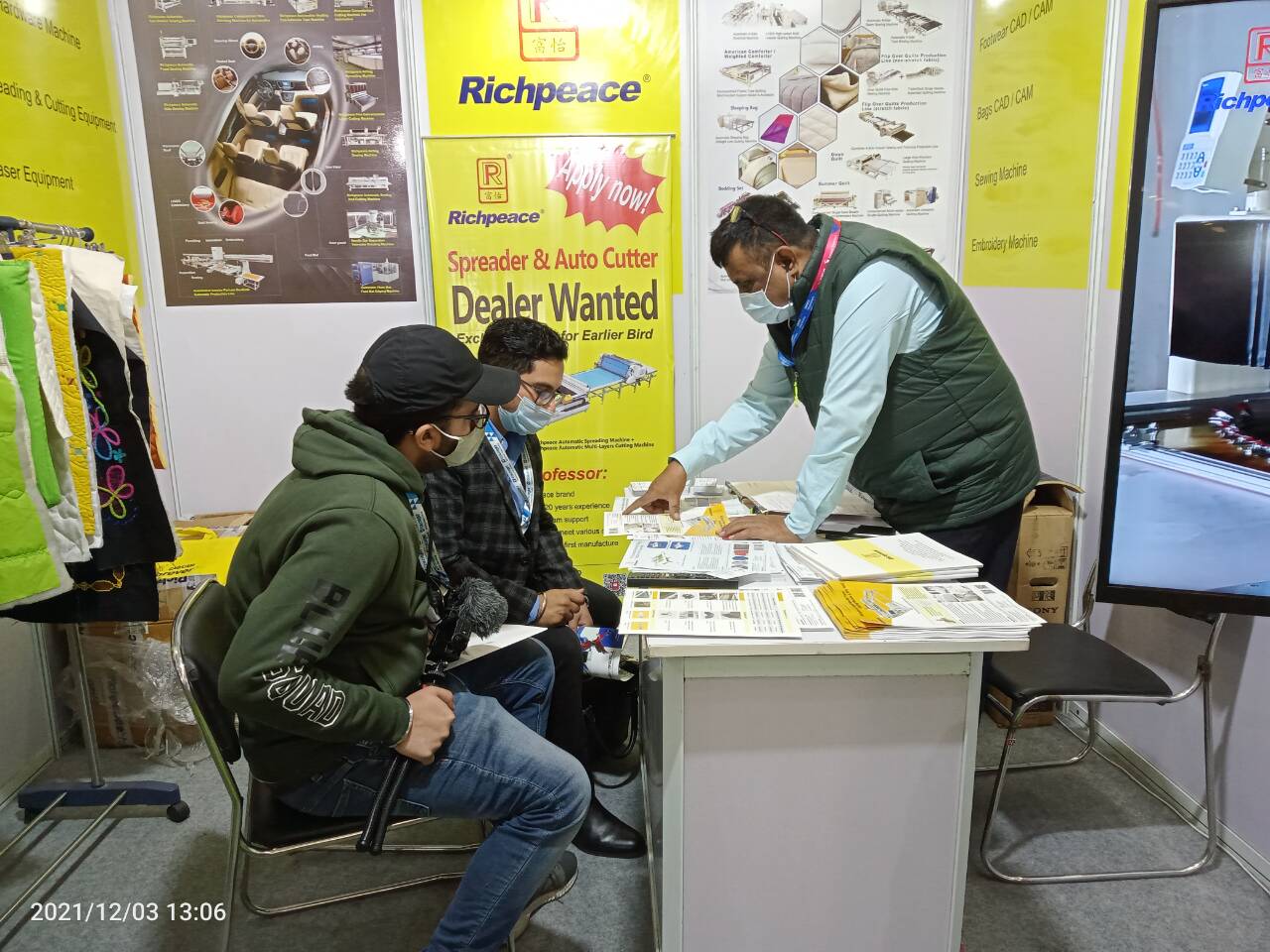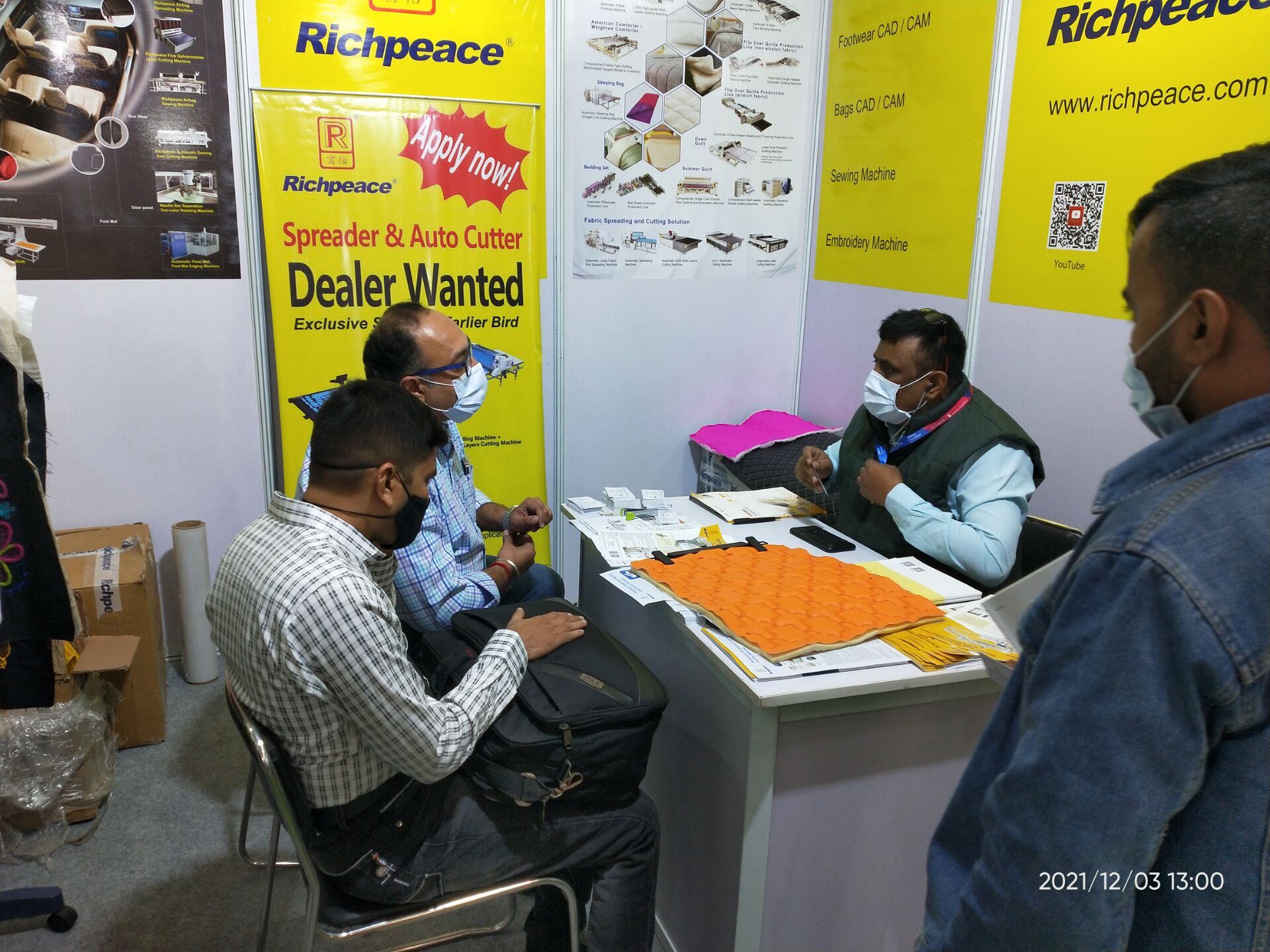 疫情沒有擋住客戶的觀展熱情,富怡展位前,客戶絡繹不絕,上工富怡印度辦經理正在認真接待客戶,向客戶介紹專業設備性能優勢。首日,應接不暇的客戶,將富怡展位團團圍住,當日便收獲數十意向訂單。