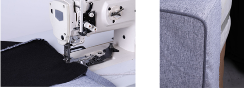 4.交替壓腳、機針和送布牙三部分同時送料,構成穩定高效的綜合送料系統,確保在縫制 厚料或復雜結構縫料時送料平順,上下層縫料不易產生移位。