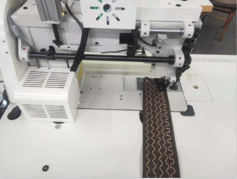 2.本機采用杜克普(DURKOPP ADLER)204款超大半回轉型擺梭,增加容線量,減少換線次數,提高工作效率;能使用極粗線(1500dx3,V415,V462, T-500 或1.4mm空心線,扁線或裝飾線),是高檔沙發和汽車座套生產廠家不可或缺的花樣裝飾縫紉設備;超強的垂直機針穿透力、特殊改型壓腳及精密的線跡調節裝置,確保在縫紉交叉接縫時保持統一完美的線跡,避免拋線,浮線,縮針距,跳針和線疙瘩等瑕疵,使用極粗線對沙發套或汽車坐套進行壓明線作業時,其優勢更加明顯;能同時進行嵌線裝飾縫。