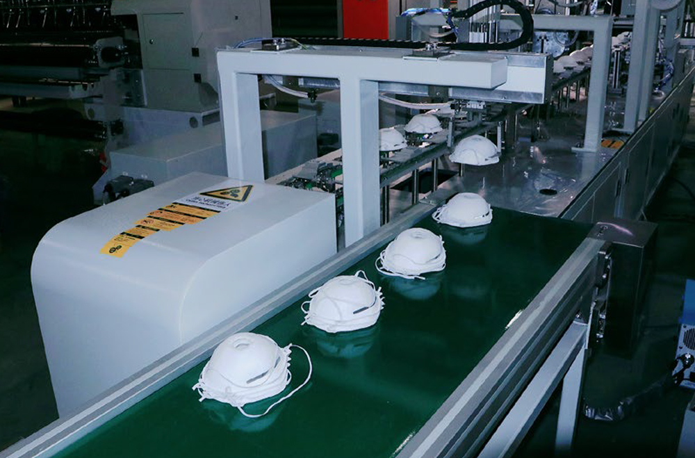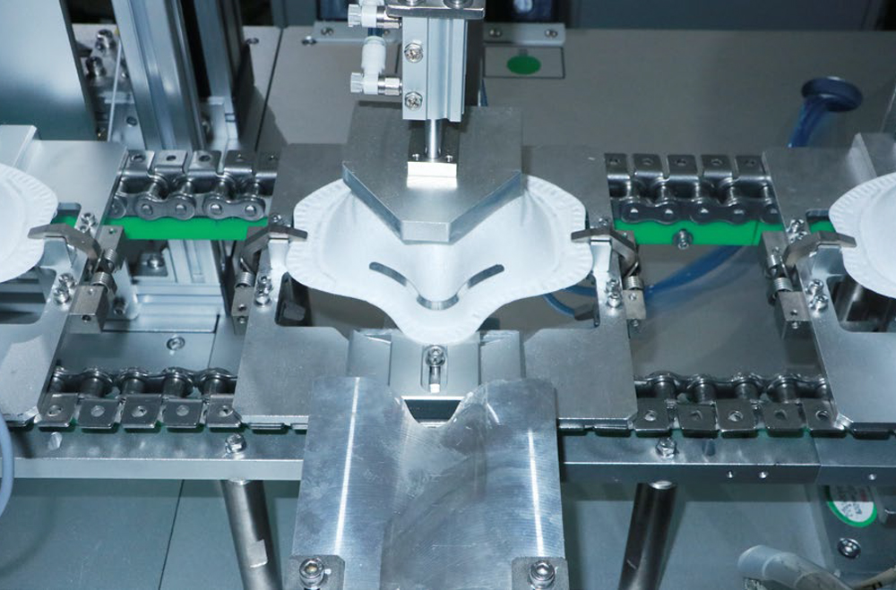 富怡全自動(dòng)罩杯口罩生產(chǎn)線實(shí)現(xiàn)了罩杯口罩從卷料到成品的整個(gè)流程。該生產(chǎn)線主要由以下工位組成:料架、杯體內(nèi)側(cè)預(yù)成型、杯體成型、轉(zhuǎn)序、移印、鼻梁條焊接、頭帶焊接、頭帶打釘、呼吸閥打孔超聲波焊接、口罩拾取。每臺(tái)機(jī)器根據(jù)客戶需求選擇進(jìn)行設(shè)計(jì)安裝。